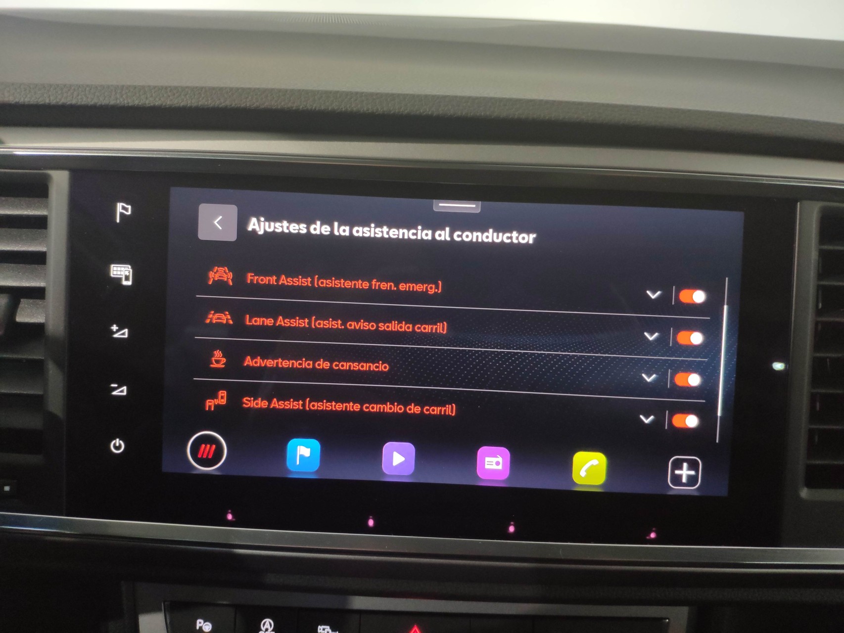 Sistema de Navegación Pantalla táctil de 23,4cm (9,2") Black Pannel- 2x USB Tipo C en consola central- Aux-in- 2xUSB Tipo C en plazas traseras- 8 altavoces - Reconocimiento de voz natural- Actualización cartográfica- SEAT Connect: Infoentretenimiento en l