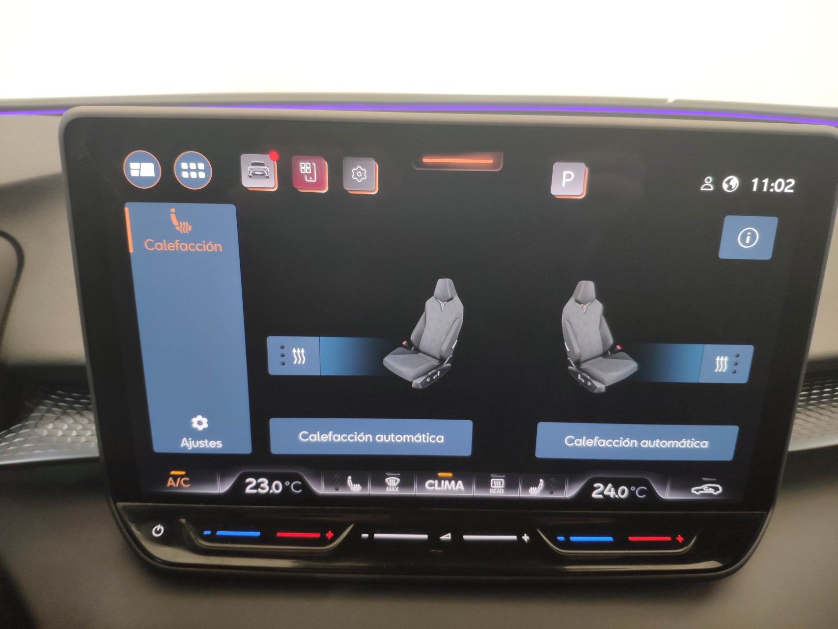 Asientos delanteros con regulación eléctrica, calefactados, ajuste lumbar con función memoria enlazado con retrovisores eléctricos. Tapicería DINAMICA. Luces ambiente interior.