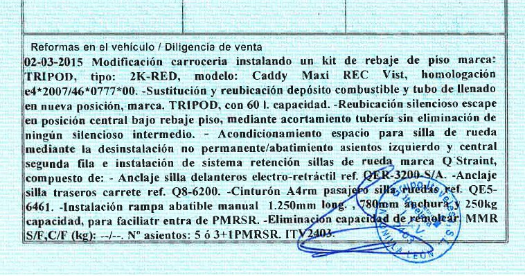 VW CADDY CON RAMPA PARA TRANSPORTE DE PERSONAS DE MOVILIDAD REDUCIDA, TODO HOMOLOGADO EN FICHA TECNICA, VER FOTO.