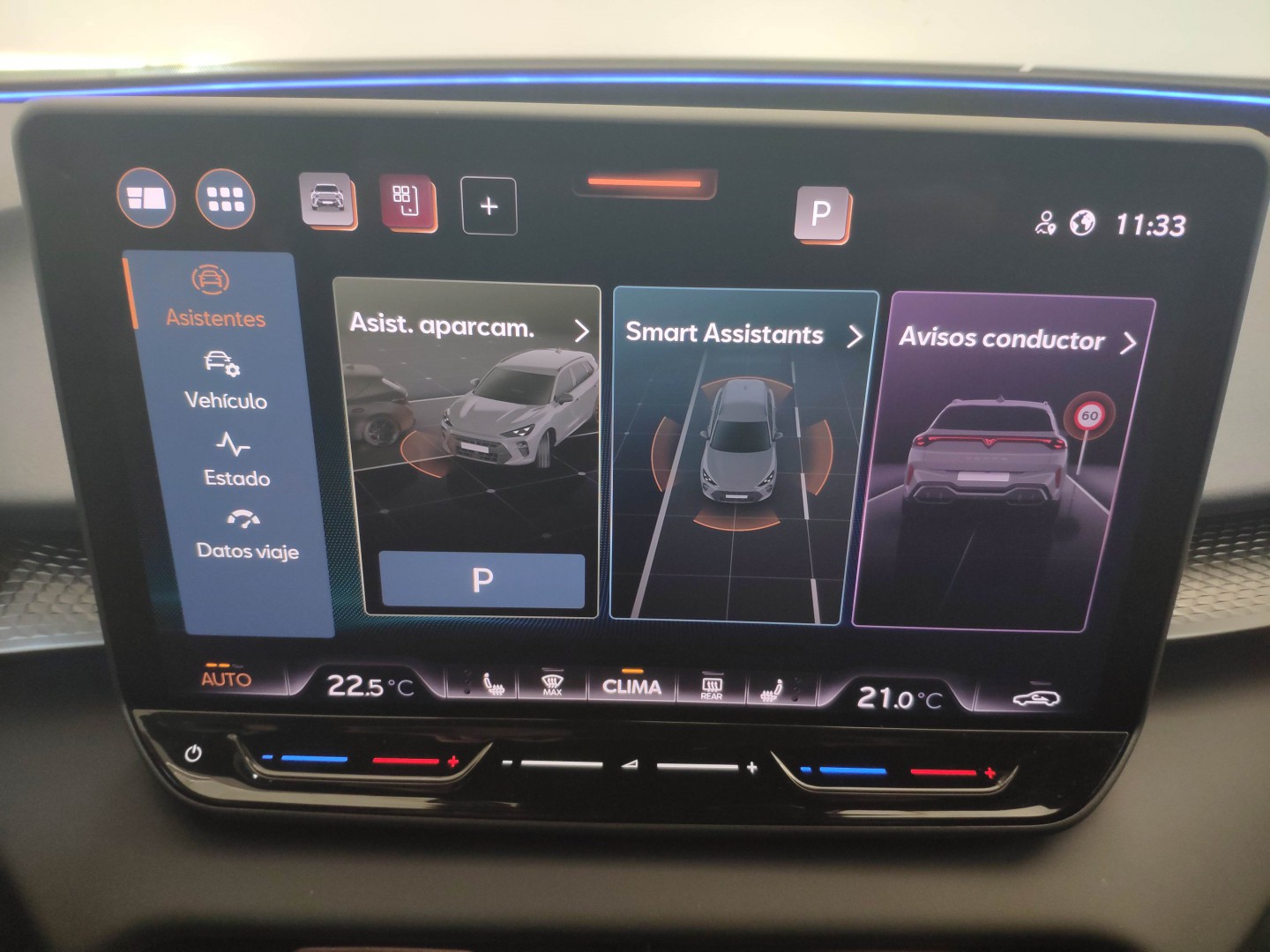 Sistema infoentretenimiento: - Pantalla táctil a color 12,9" - 8 + 1 altavoces - Reconocimiento de voz natural - Full Link Inalámbrico (Android Auto & Car Play) - Bluetooth - Receptor de radio digital DAB