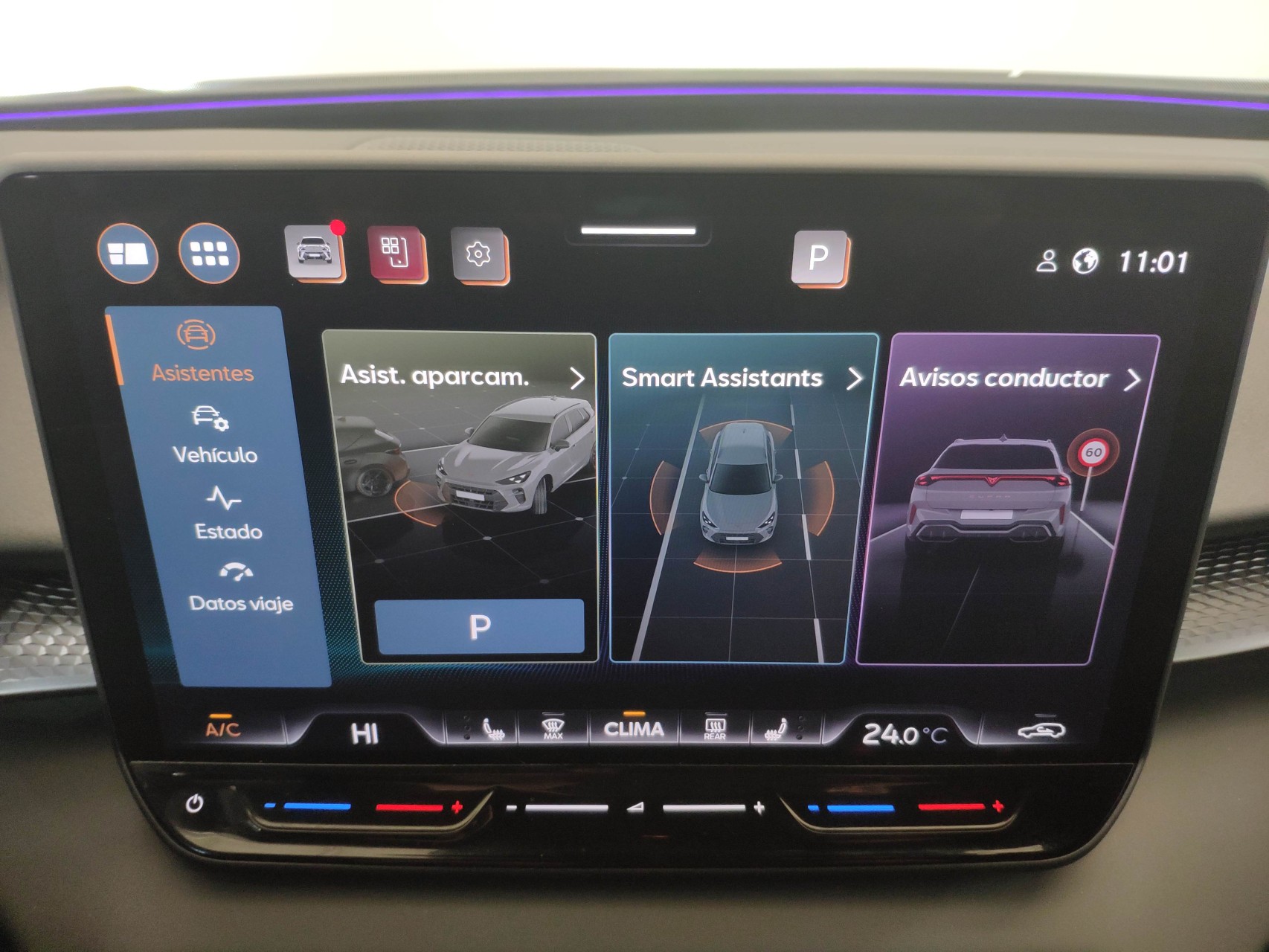 Asientos delanteros con regulación eléctrica, calefactados, ajuste lumbar con función memoria enlazado con retrovisores eléctricos. Tapicería DINAMICA. Luces ambiente interior.